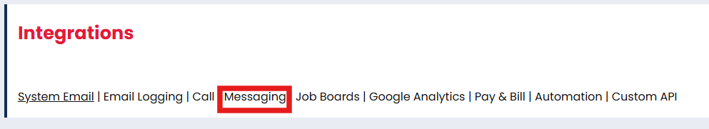 The Messaging tab will allow you to request Firefish SMS, enable Firetext SMS, or integrate with Payemoji.
