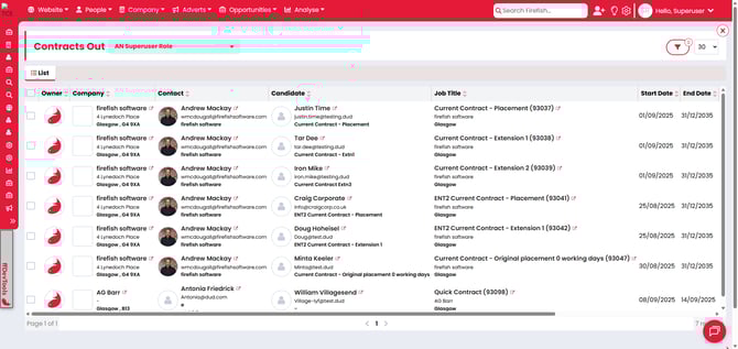 Contracts Out helps you track all contractors working with clients, giving you clear visibility of who is working, where, and for how long. From one screen, you can view, filter, and manage contractor placements to stay organised and in control.