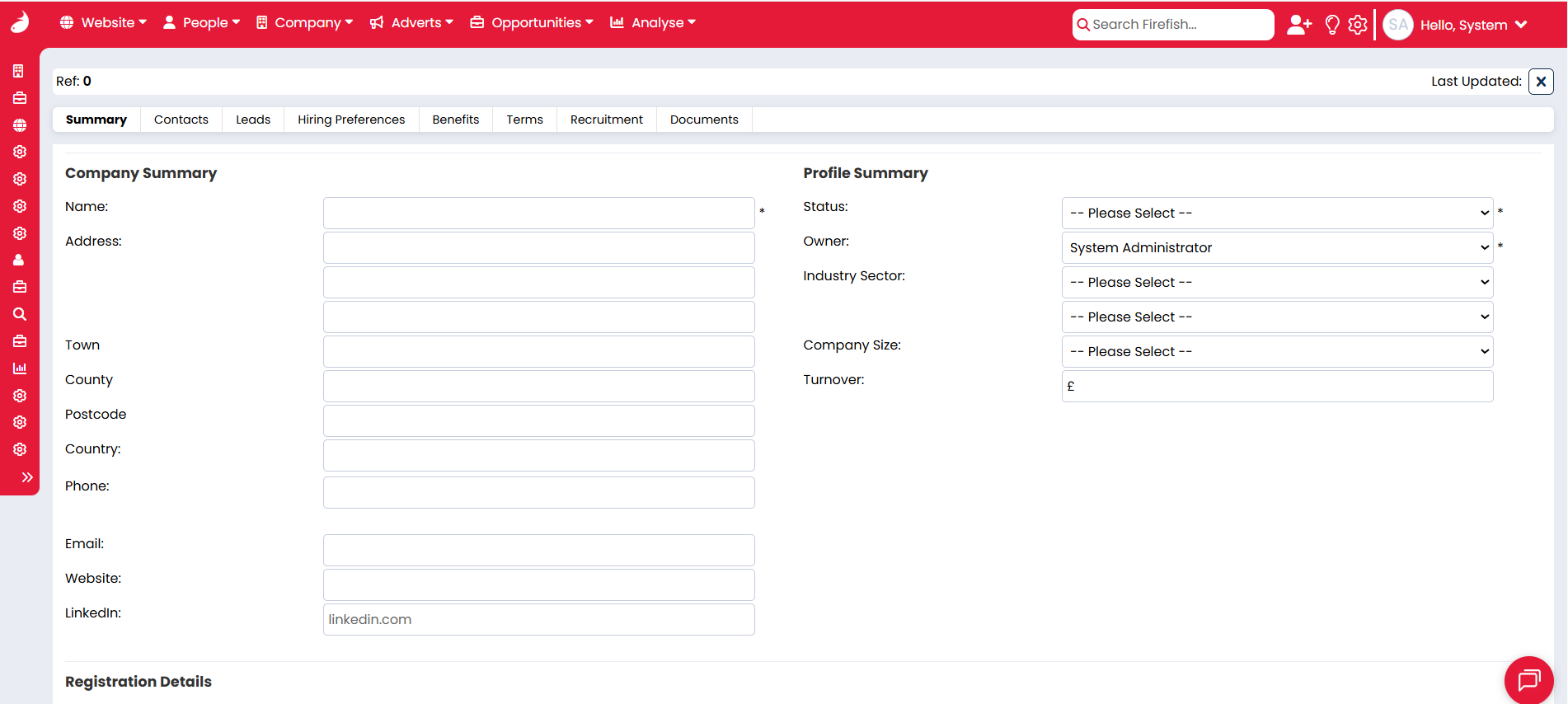 How to create a new company record in Firefish
