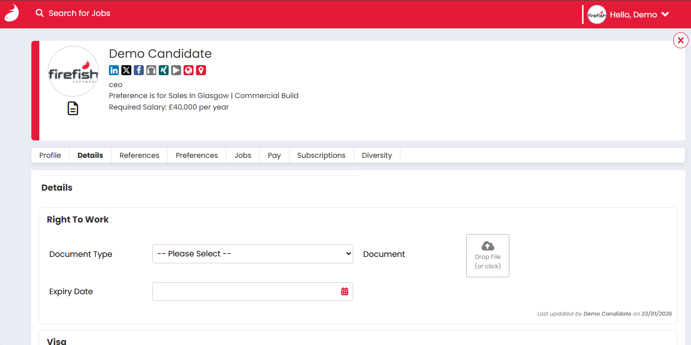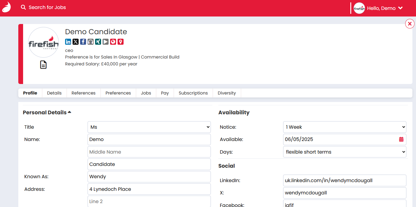 Any changes candidates make to their profile, references or preferences will be reflected in your Recruiter Portal, allowing candidates to keep the data you hold on them up-to-date and correct.