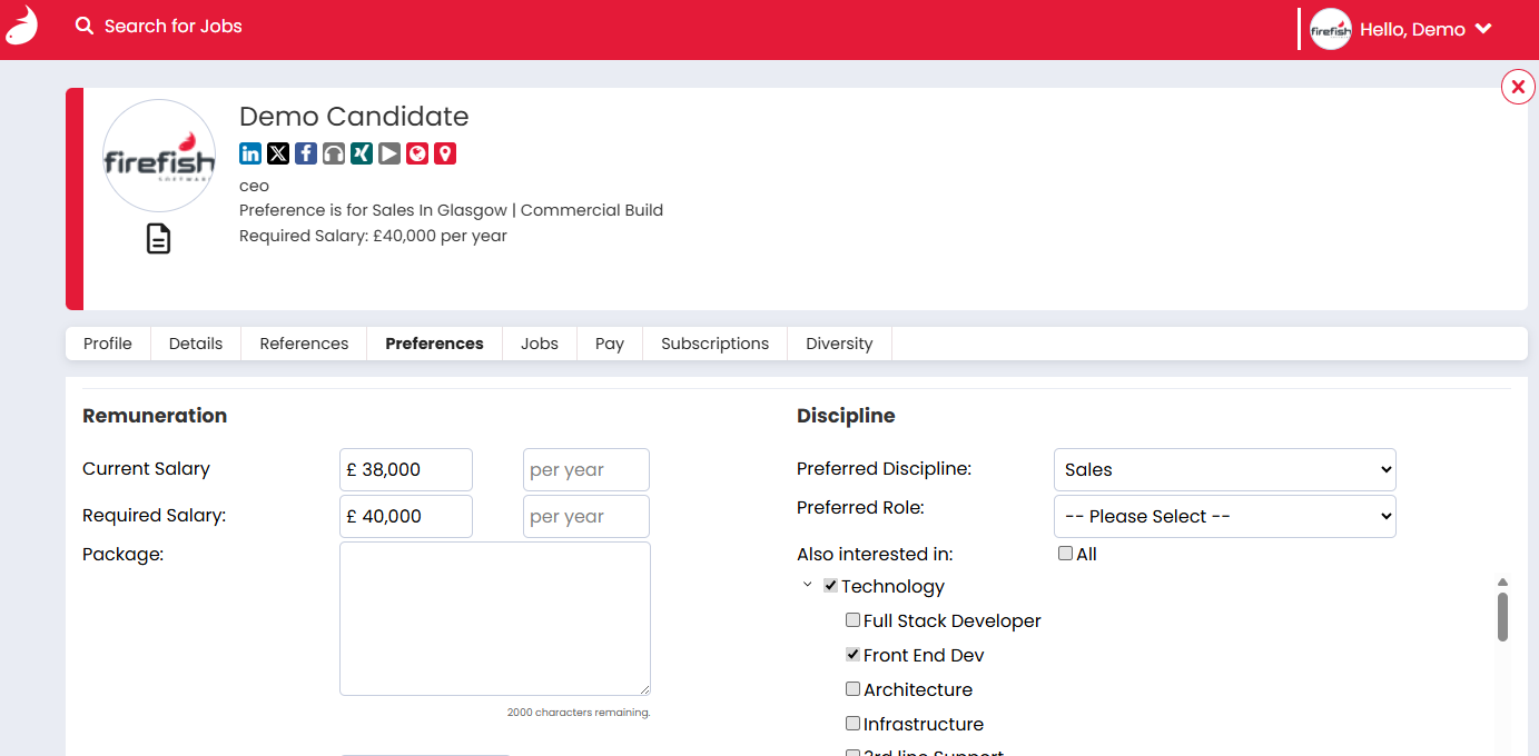 Preferences in the Candidate Onboarding Portal works exactly as it does on the Recruiter Portal - Candidates can update their preferences on a self service basis and update their preferences if anything changes.