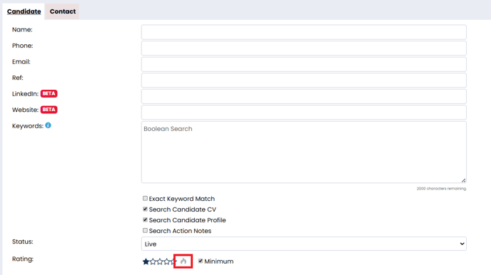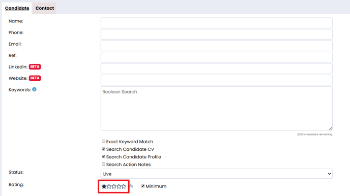 If minimum is checked the search results will include any candidates that have a star rating equal to or above the selected star rating.