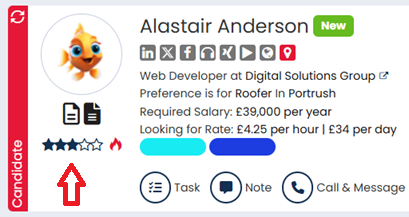 A candidate's star rating will not only display on the candidates record - it will also display in the search results, candidate record preview and on the job workflow.
