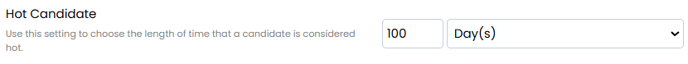 Superusers can configure the length of time a candidate stays hot for by going to settings > People Configuration > Hot Candidate. This can be configured based on a set amount of days, weeks, months or years.