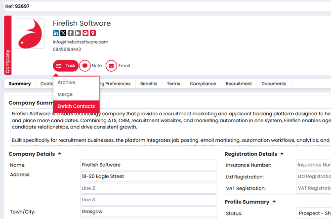 Discover and verify contact details for your contacts using the Firefish Enrich feature