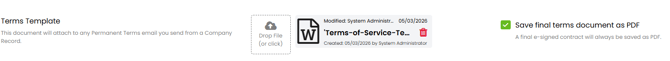 Once the document is fully signed, Firefish automatically stores the final version on the Terms tab of the company record.