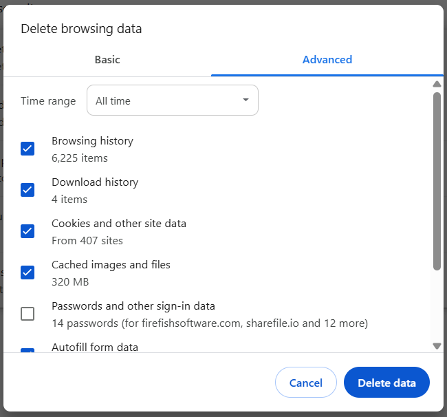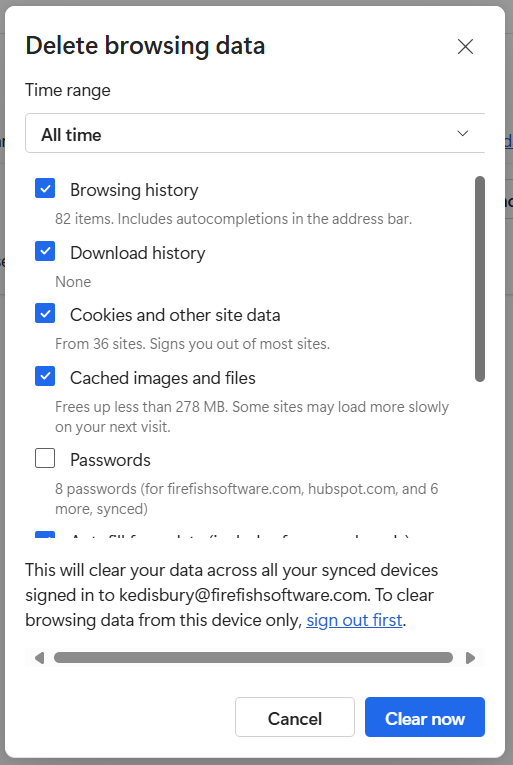 Once you have selected the relevant options and time range you can select 'Clear now'.