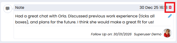 Leaving notes on candidate records in Firefish is essential for maintaining a clear, centralised history of interactions, making it easy for anyone on the team to pick up where someone else left off. It improves collaboration, avoids duplicated effort, and helps ensure consistent communication with candidates.