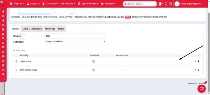 Go to Settings > Job Configuration > Temp Workflow > Bookings.