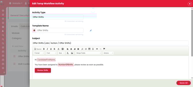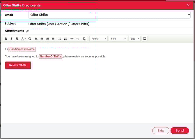 Note: If the same candidate is being offered more than one shift, only one notification is sent when triggered, covering all shifts they have been assigned to.