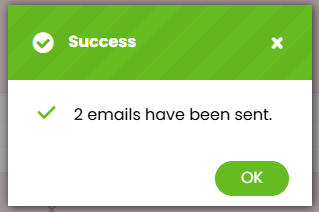 • Selecting 'Send' sends the emails to the candidates, after which a success modal shows to confirm the emails sent: