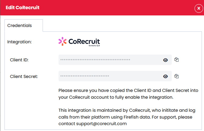 This integration is maintained by CoRecruit, who push notes and updates from their platform directly into Firefish, after requesting and retrieving Firefish data. For support on this integration, please in the first instance contact their support team at support@corecruit.com