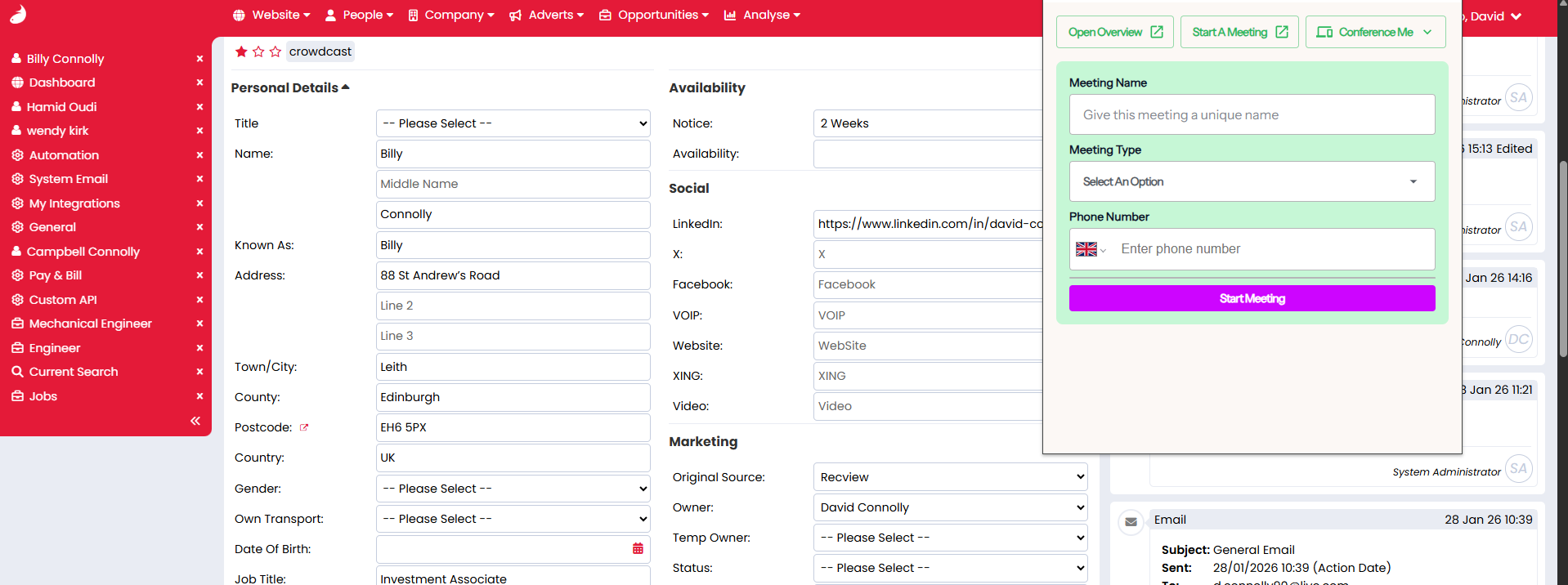 - Automatic Record Matching: CoRecruit will use email addresses and phone numbers to match transcriptions with the correct candidates or contacts in Firefish.