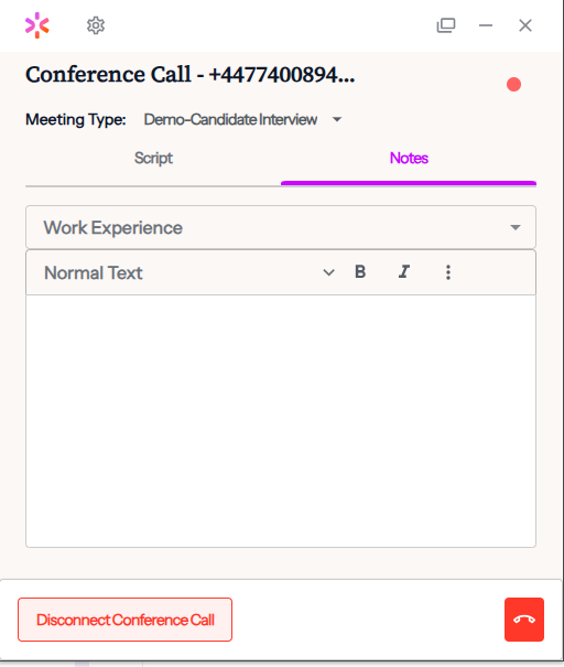 Before or during the call select the appropriate call type from the call types that have been set up in CoRecruitl as part of your onboarding.