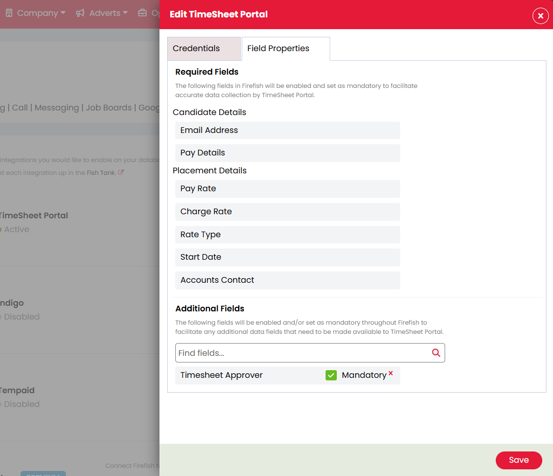 - Create Your Timesheet Portal Account: Ensure you have an active account with Timesheet Portal and notify their team that you’ll be integrating with Firefish. This allows them to set up CRM integration for you.