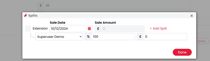 If you've been working on this role with a colleague, you can add use the Splits button to split the sales between you and a colleague: