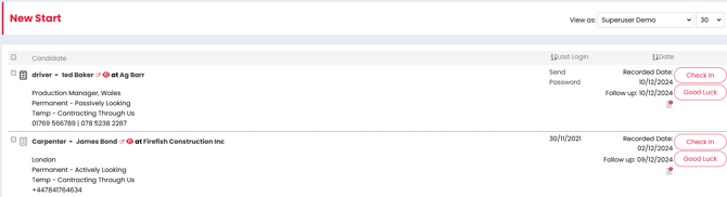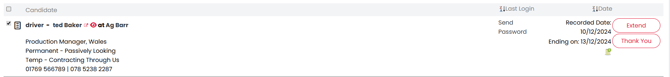 Your Sales Figures will automatically be updated to reflect your changes and each candidate will display a new action in their recent activity titled Roll On - Contract. This action displays the new End Date as well as linking to the Job, Contact and Company.