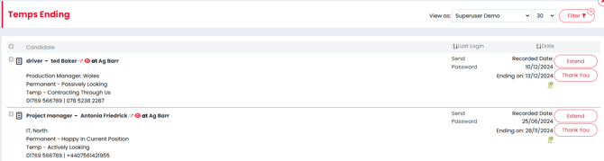 To roll on a contract you'll need to navigate to your Contracts Ending to do list, which can be found in the Jobs section on your Dashboard; (If you've chosen to call your workflow Temp then this may appear as Temps Ending).