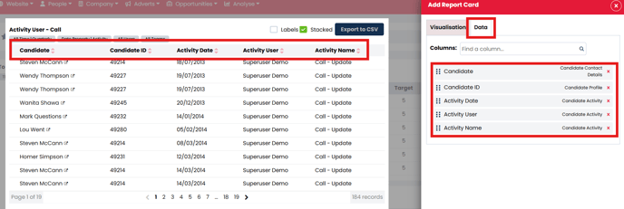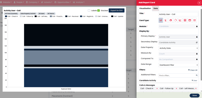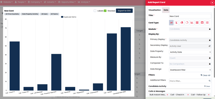 Example: You are a looking to build a Report Card showing how many Calls actions each of your recruiters have completed over a certain period.