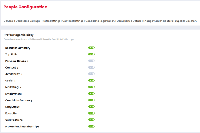 People Configuration - Candidate Settings
