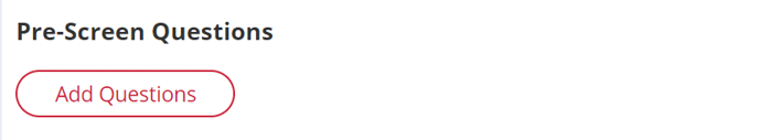 - Navigate to the Pre-Screen Questions Area: In the advert creation workflow, locate the Pre-Screen Questions section and click the "Add Questions" button.