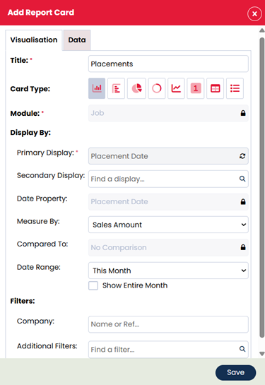 - Title – Name the report as you see fit (i.e. ‘Placements’ or ‘Sales’)