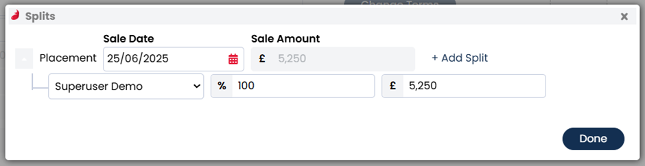 If sharing sales with another user, select Add Split and update the details.