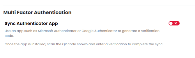 5. Click the red slider to activate Enforce Multi Factor Authentication