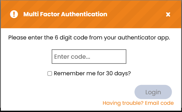 Multi-factor authentication (MFA) is a method that grants a user access to a system or application only after presenting 2 pieces of evidence specific and unique to that user. For Firefish, this consists of an email address and password with the addition of a 6 digit authentication code. This code is generated in an Authenticator App that has been downloaded to a mobile device.