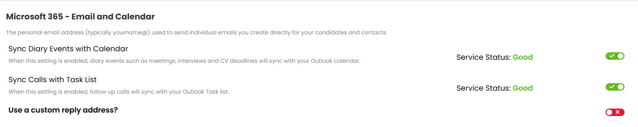 Optional - Once you're logged in, you can choose to sync your diary events with your calendar, and your follow-ups with your Outlook task list. Activate these if you wish.