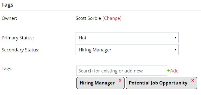 Use Primary and Secondary Statuses and Tags to label contacts based on hiring activity or engagement stage.