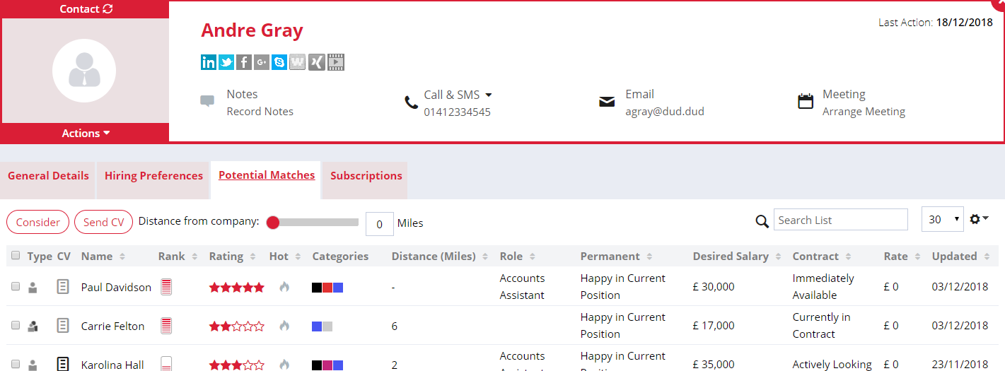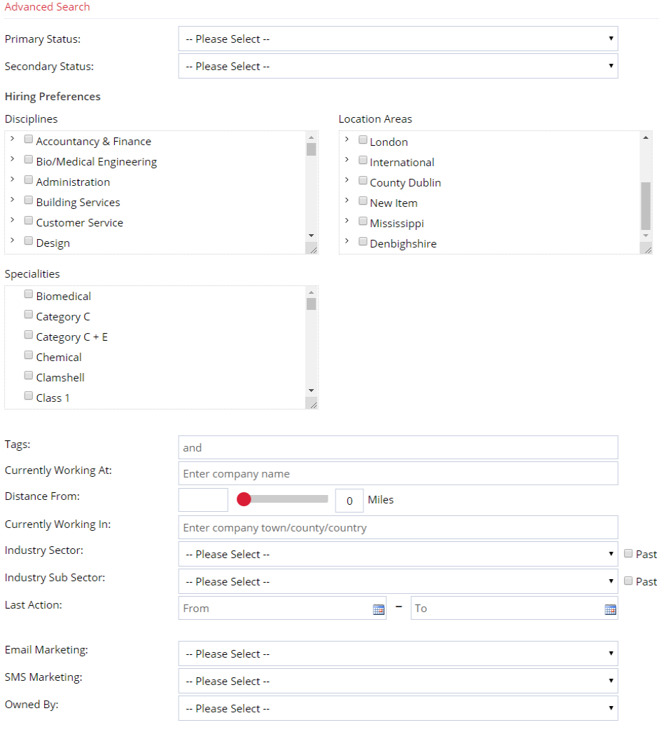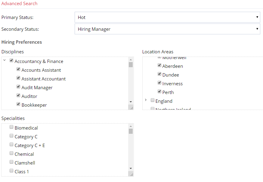 Example: Search for hiring managers in Edinburgh looking for marketing talent with a Hot status. Combine preferences, tags and statuses to build powerful saved lists.
