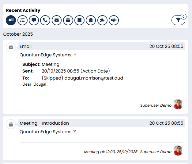 Every BD interaction can be logged directly within Firefish: