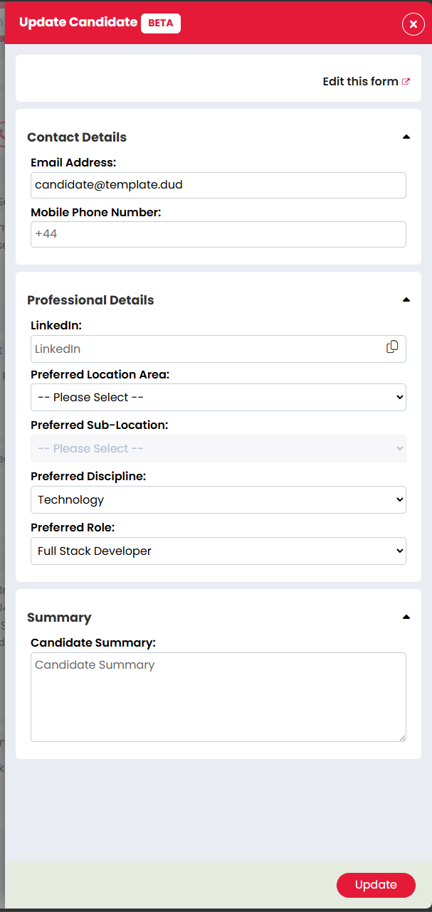 Quickly update key candidate details from one focused form.